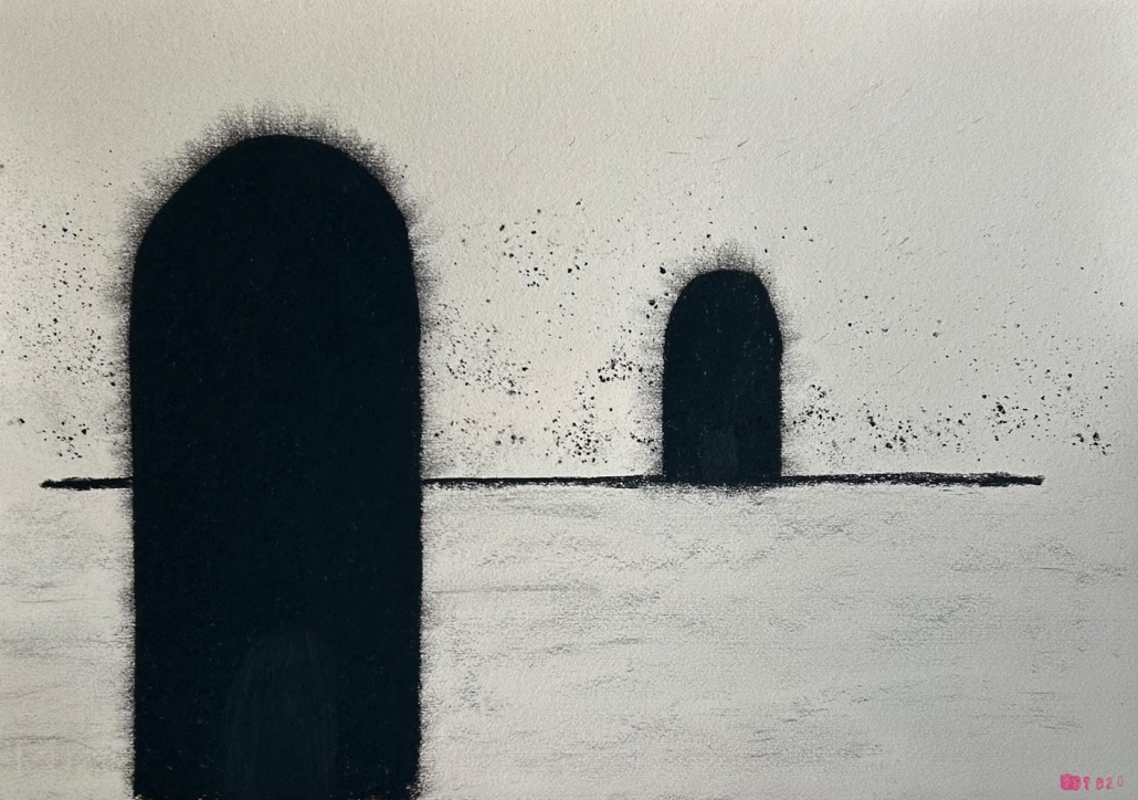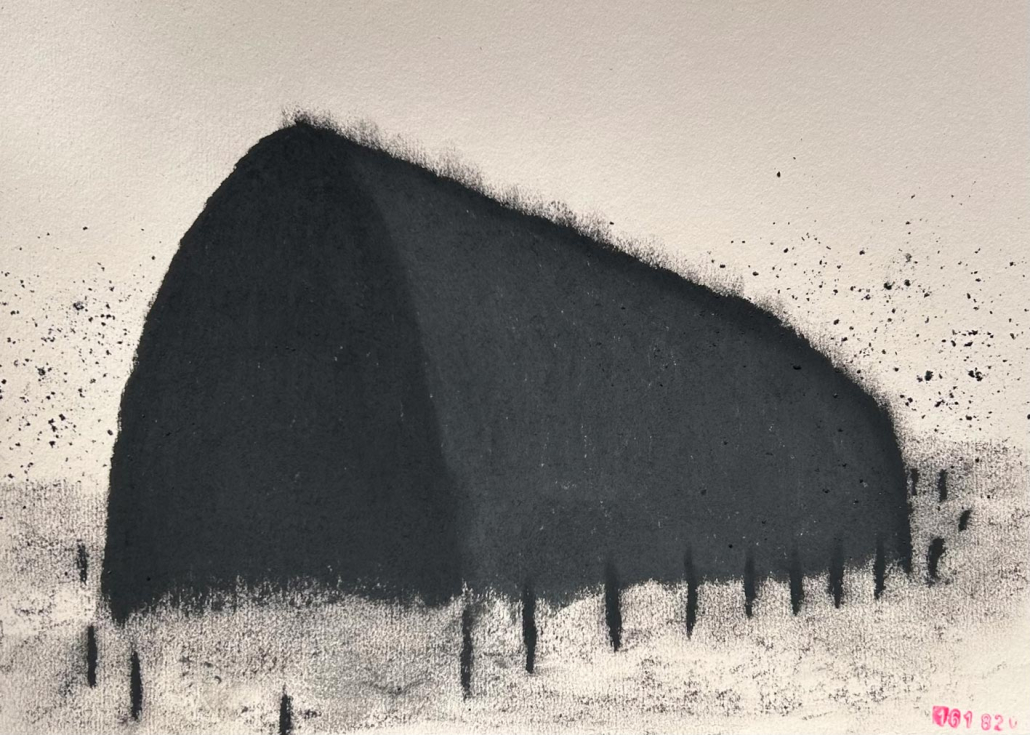 by this time i’d lost all fear of change in fact embraced it; the unavoidable evolution, it made sense; intuition founded, secured, it felt good, liberating. one door closed and another previously unseen one swung wide open; a gate unlocked a channel unblocked and when all was still, the passing thoughts, the mish mash of random ideas, the inner monologue fell silent and took the form of dark structures and shapes that filled or splintered the landscape within; objects that rose from the ground or floated across the firmament; independently placed; eruptions; huge buildings and vegetation. i came to recognise these forms as containers for decoding jumbled thoughts, for untangling the knots of mental stress and for editing undiscovered or unresolved ideas, they were in fact hangars of the mind. the creative bunkers of inner space. the molecular housings of existential expression. the text and haikus are leakage.