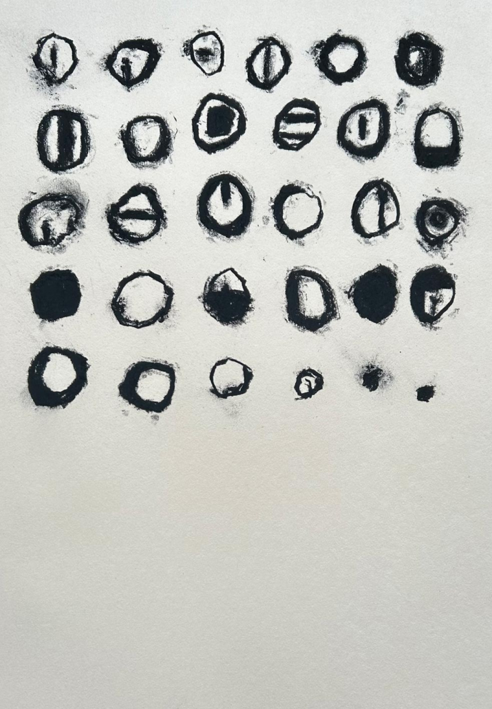 it records the shift between the figurative paintings begun in the summer of 2019 and what succeeded them post january 2024 after learning and practicing transcendental meditation.