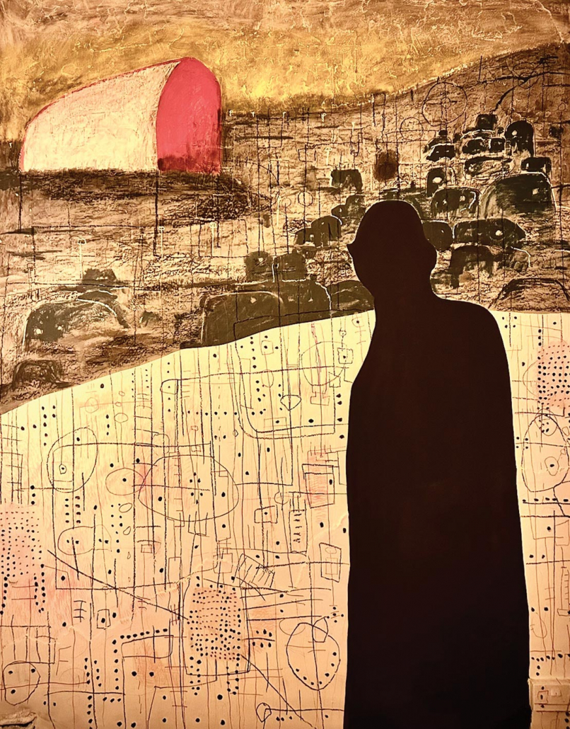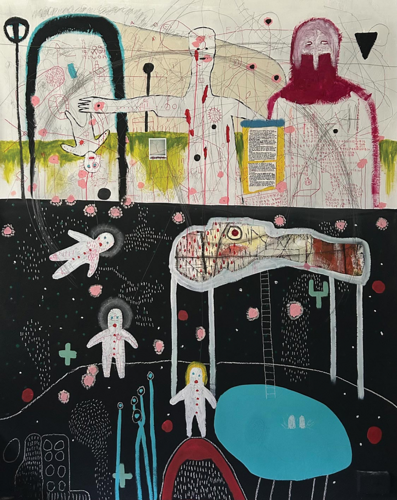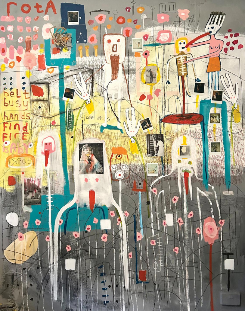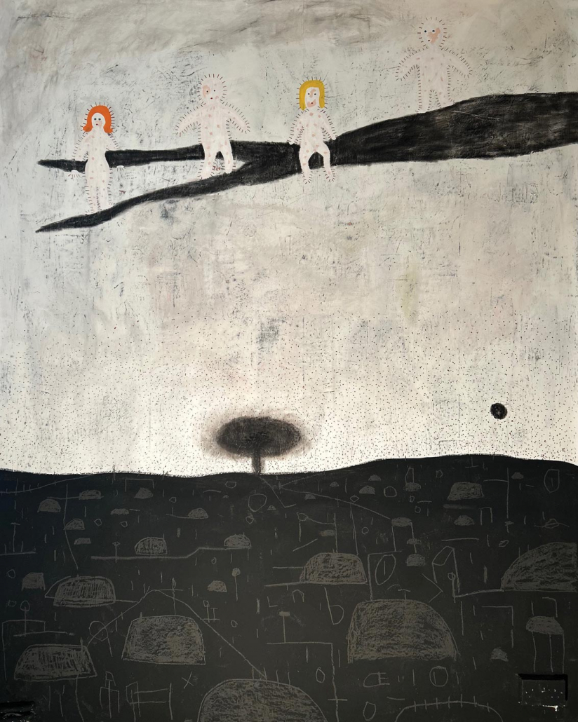 and the seat i meditate in faces the wall this wall that used to house many of the books now gone and i opened my eyes one morning and there it was a 2.5 by 2 metre surface ready for painting and thats how it began the project that would consume my days and nights for the next nine months painting and making good and painting and painting over and observing and listening and communing with and painting again; this process and the people involved along the way; what a wondrous life changing journey and at the outset filmmaker peter bromley of 1968 film group got involved and began recording and documenting the process resulting in a thirty minute film which is amazing and was such a thrill to be part of.